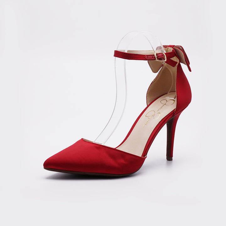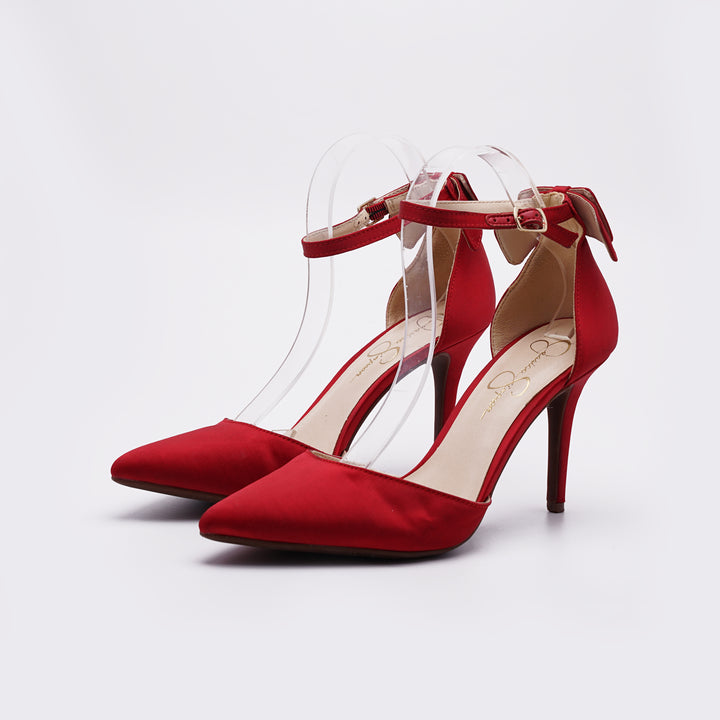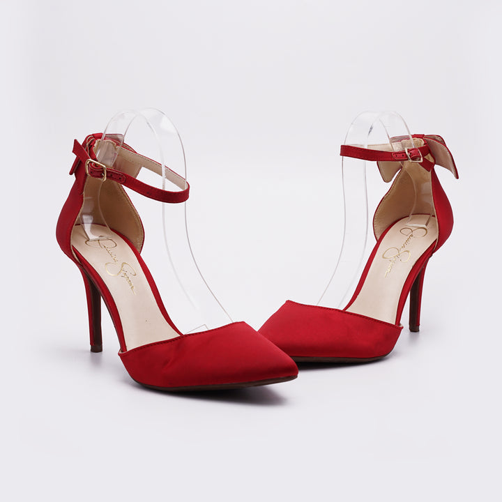 Jassica Simpson Satin Stiletto Heel Pumps with Bow Ankle Strap