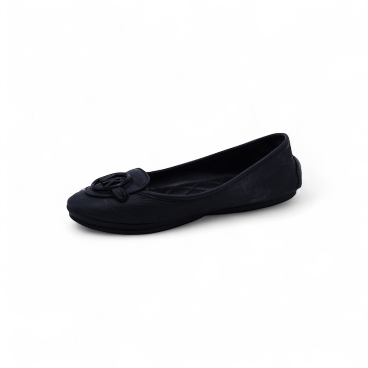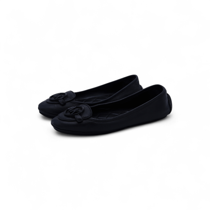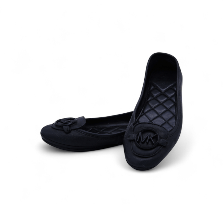 • Elegant Michael Kors flats with a matte finish and distinctive brand embellishments.
