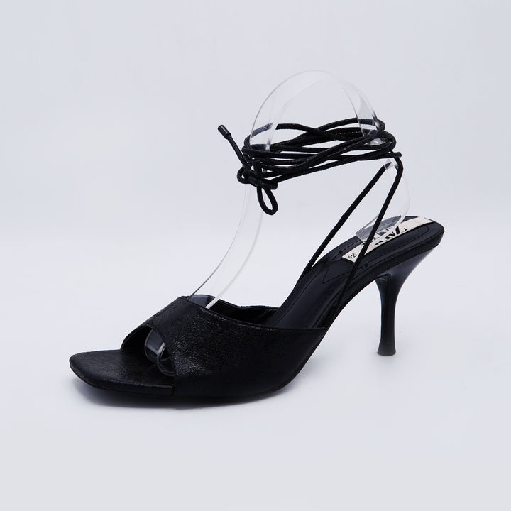 • Featuring a sleek open-toe design and a slender stiletto heel for elegance.