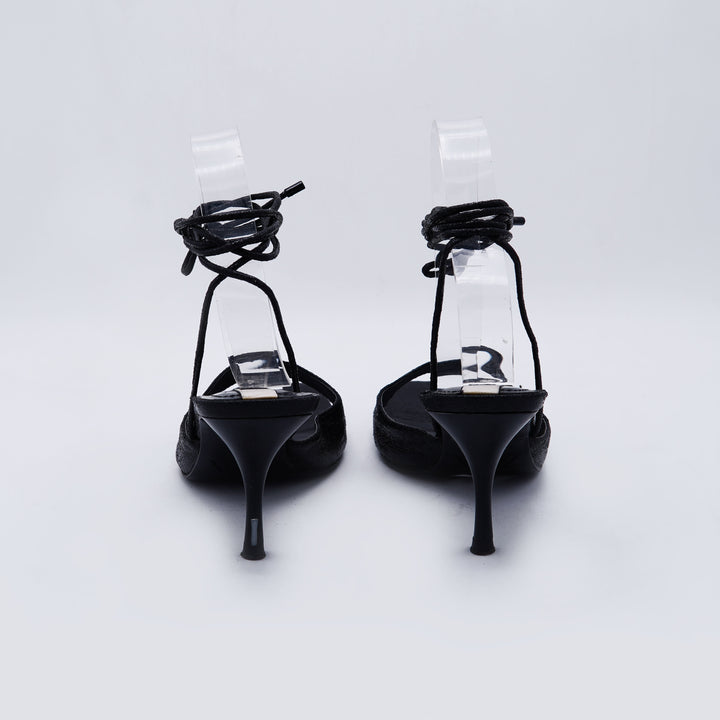 • The versatile ankle-tie straps allow for a customizable and chic look.